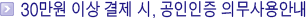 2005년도 11월 1일부터 금융감독원의 전자금융거래 안전성을 강화하기 위해 30만원 이상일 경우, 모든 인터넷 쇼핑의 신용카드결제는 공인인증서를 반드시 사용하도록 정했습니다.